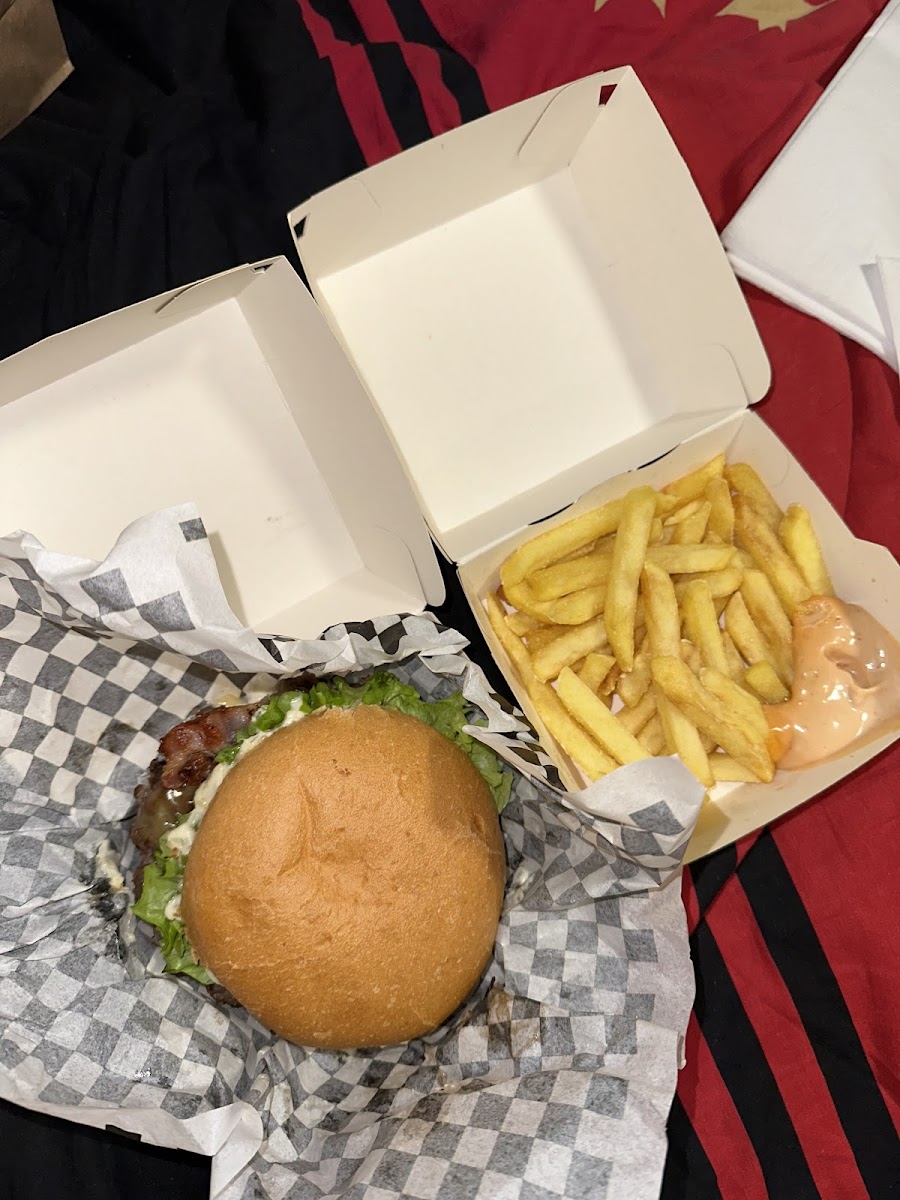 Abbiamo preso dei panini d'asporto con 2 porzioni di patatine. Il pane era buono e morbido, anche la carne era saporita. Patatine buone. Insomma rapporto qualità prezzo direi molto buona. Potrebbero fare una porzione più abbondante di patatine a mio avviso. Consigliato per chi vuole un panino decisamente più saporito dei classici fast food e non vuole spendere una fortuna.
